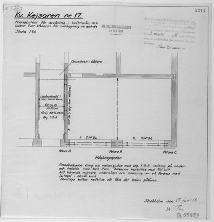 Underlag för bygglov år 1938, fastigheten Kejsaren 17