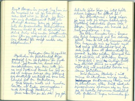 Fritiof Englund skrev dagbok under hela sitt liv. Den förvaras i Stockholms stadsarkiv. I den här posten kan du läsa vad han skrev under veckan efter den 9 april 1940, då tyskarna invaderade Danmark och Norge.