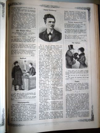 I det här numret finns på tredje sidan ett litet porträtt och en presentation av den nye unge författaren August Strindberg som just 1879 hade slagit igenom med romanen Röda Rummet. Tidningen kan du läsa genom att bläddra i bildvyn ovan.