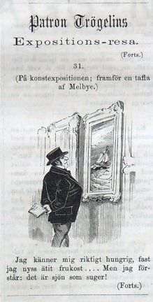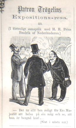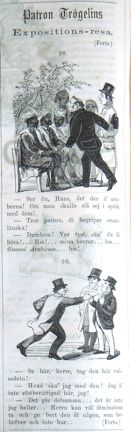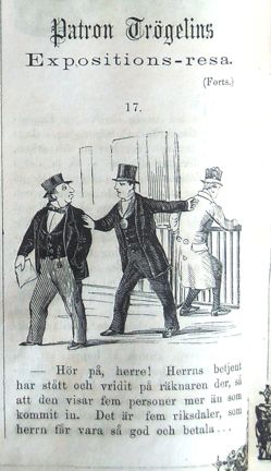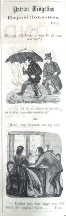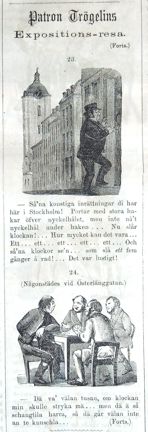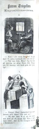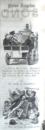 Följ med den småländske patronen Trögelin på hans resa till huvudstaden och Stockholmsutställningen år 1866. I bildsviten får vi se Stockholm och Expositionen med satiriska ögon. Serien är en drift med såväl Stockholm och lantisar som med utställningen som sådan. Läs serien via länkarna nedan!