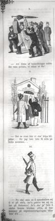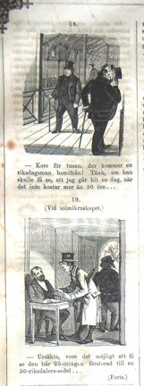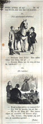 I tidningen förekom även skämtteckningar med tillhörande text, ungefär som i 1900-talets tecknade serier.