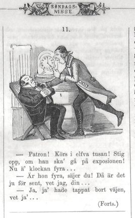 Bilden är tagen ur ett privatägt exemplar av Söndags-Nisse, men tidningen finns i Kungliga Bibliotekets samlingar.