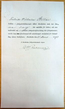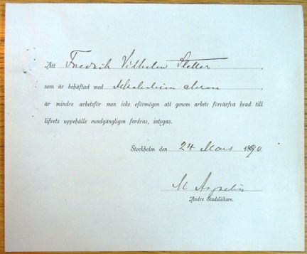 Den 22 mars 1890 greps Stetter av en konstapel Rydell efter att ha "anträffats bettlande i cigarrbutiken i huset No 42 vid Regeringsgatan", det vill säga han hade ägnat sig åt tiggeri. Det var inte första gången Stetter blev intagen av polisen.