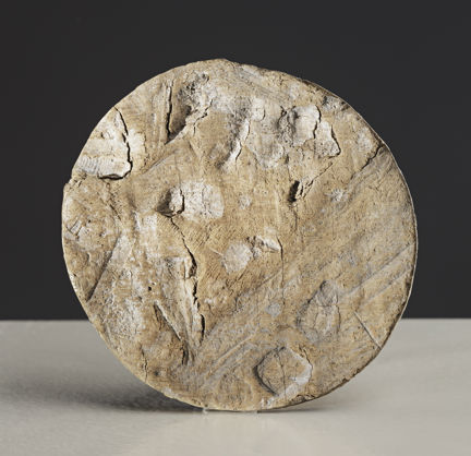 På locket på bilden har någon lustigkurre under medeltiden ristat in något som liknar tre snoppar i olika storlek. Locket har sedan hamnat i jorden och har därför bevarats till våra dagar.