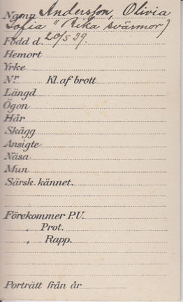 Olivia Andersson begick en mängd bedrägerier genom årens lopp. På baksidan av det här fotografiet har polisen skrivit "Rika svärmor". Hur hennes bedrägerier kunde gå till kan ni få ett exempel på i den här polisrapporten.