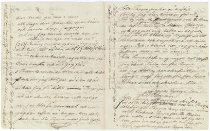 Söta Pappa skafa mig något bot derför Jag skall Talla om för Pappa att jag Aldrig har skrifvit så långt bref för, der för får Pappa Hvara snell ock skrifva TillPappas lydige son