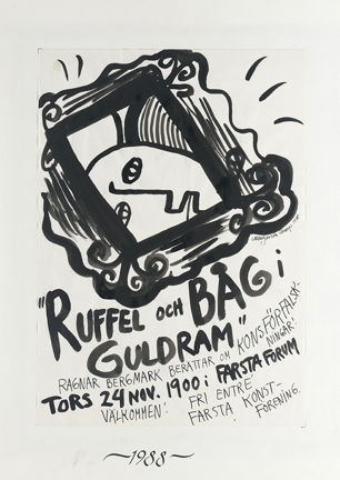 Konstnären Margareta Skarp som var sekreterare i föreningen ritade logotypen samt flera av affischerna. I bildspelet ser du tre av affischerna, från 1986, 1987 och 1988. Originalen förvaras på Stockholms stadsarkiv.
