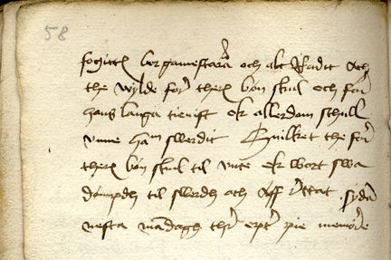 Tesse for:ne godemen aff menighethin hade fogitten, borgamestarana ok radit budh sendt, ath the schulle medh thöm rantzake offuerweghe ok forhöre aff Pawal ringere, om han nagat forswaar hade j then skadelige wecht han vachade j kirkie törnit, tha elden tendes swndaghin nest epter Martinj j nedersta gardin j Sancte Laurens grendh pa södra sydan, som Niels akare vtj bodde. Tha j fogittens Jon Jönssons, borgamestares och all radzsins nerware medh for:ne menigheet haffde han jngen forswar frambere, vtan sade, at tet war hans rette forswmelse, ok vrsakade han sin stalbroder ther vtjnnan segiendes, ath han hanom vechte j sin retta tidjdh ok stode ner hanom en stund sidan j vyndöget och thalede medh hanom, for aen han sigh niderlade til hwila. Ther medh dömpdes hans matsskap Jöns tornwachter fry. Medh tet the vtuistes, thalades om for:ne Pawal ringere. Tha gik röster offuer alt, ath han hade döden fortient medh eth hiwll. Tha wort menighetin til radhe ok framgingo jn fore disken och bade fogitten, borgamestarana och alt radit, ath the wylde fore theris bön skul och fore hans langa tienist ok allerdom schull vnne hanom swerdit. Huilket the fore theris bön skul till vnte ok wort swa dömpdh till swerdh och aff rettat sydan nesta mandagh ther epter, pie memorie.