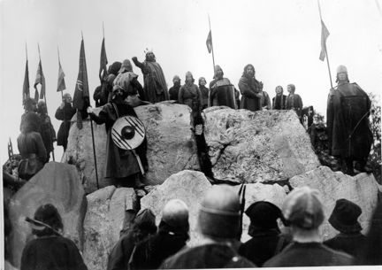 På bilderna kan du se inslag från festspelet som tog sin början i en scen uppe på Skansens renberg där Torgny Lagman från Tiundaland stod i spetsen för Sveriges bönder inför Olof Skötkonung år 1018. Torgny är omtalad i Snorre Sturlassons Heimskringla. Historien om honom är sannolikt påhittad. Du kan läsa om honom i den bifogade länken.
