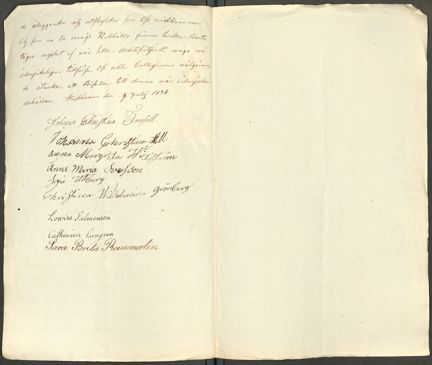 Undertecknade utfattige och ålderstigne, som medelst Rodd mellan Broarne söka förtjena till wårt lifsuppehelle wåga i största ödmjukhet hos ädle Collegium anhålla att den för oss utsatta Taxan, å Långrodd måtte Enligt ädle Collegiums wisa öfverwägande och Behjertenhet något förhöijas. Så att wi litet lättare må kunna med Ordentlighet och Ärlighet fullgöra de åliggande och utskylder som Oss widkommer.