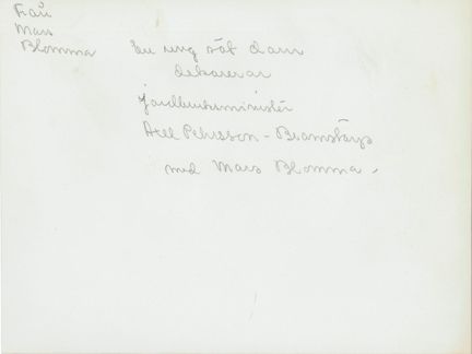 På fotografiet ser vi en kvinna som dekorerar jordbruksminister Axel Pehrsson-Bramstorp med Mors blomma både i pappers- och knapphålsvariant.