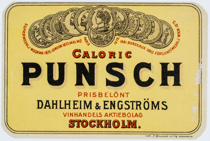 På etiketten står: Caloric Punsch. Prisbelönt Dahlheim & Engströms Vinhandels Aktiebolag Stockholm.