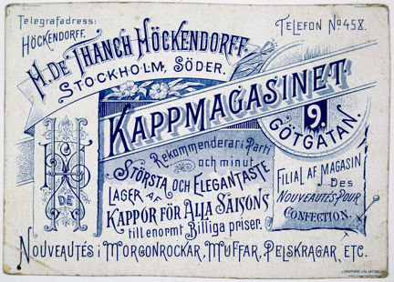 Reklamtryck. M. de Thanch Höckendorff Kappmagasinet