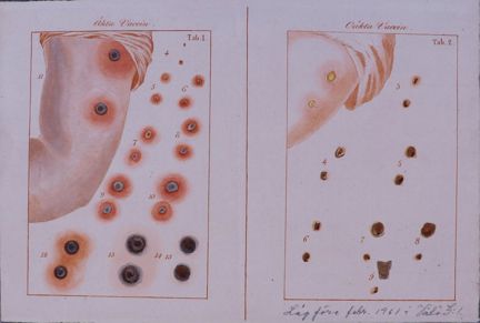 ”Detta medel består i ympandet af ett slags ganska lindriga koppor, hwilka tidtals wisa sig på spenarene av mjölkande kor, och derföre fådt namn av vacciner eller ko-koppor. Man har anmärkt att de personer, som under mjölkningen ådragit sig desse vacciner, hafwa sedermera undgådt koppsmittan.”