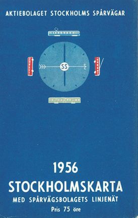 Kartan visar Stockholms innerstad och ytterstad med Spårvägsbolagets linjenät.