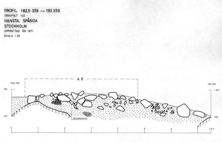 Skelettgrav, anläggning nummer 8, fornlämning RAÄ 143 i Spånga socken