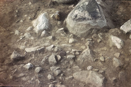 Anläggningen syntes före undersökning som en rund, 8 meter i diameter och 0,8 meter hög, övertorvad förhöjning med ett tiotal ca 0,1- 0,6 meter stora stenar synliga i ytan.