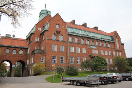 Frans Schartau’s commercial institute was founded in the 19th century by leading local businessmen. In 1914–15 the institute moved to this imposing brick building on Stigbergsgatan designed by Knut Nordenskjöld. Since 2017 the institute has been part of Stockholm’s school system, named after the popular local author Per Anders Fogelström. (2023)