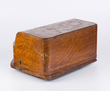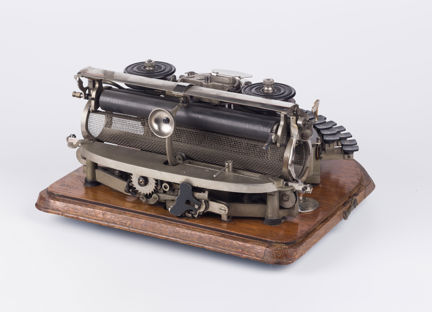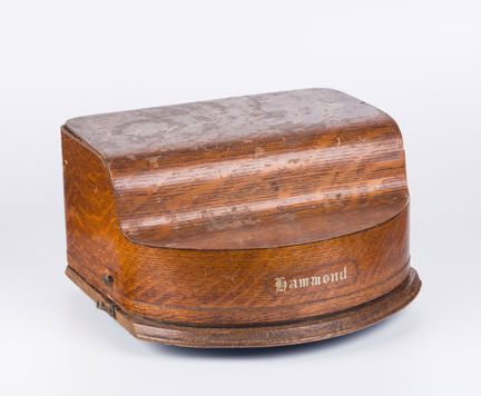 Skrivmaskin av märket Hammond, troligen från cirka 1900–1915. Till skrivmaskinen finns också ett fodral i okänt träslag, men för skrivmaskiner av märket Hammond användes ofta finare träslag som mahogny eller ek.