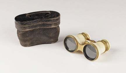Teaterkikare av ben och mässing, med fodral, märkt Joseph Leja, 1850–1900.