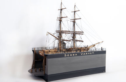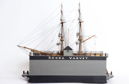 Den här modellen i skala 1:48 visar Södra varvets stora flytdocka.