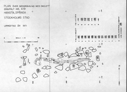 Skelettgrav, anläggning nummer 51, fornlämning RAÄ 143 i Spånga socken