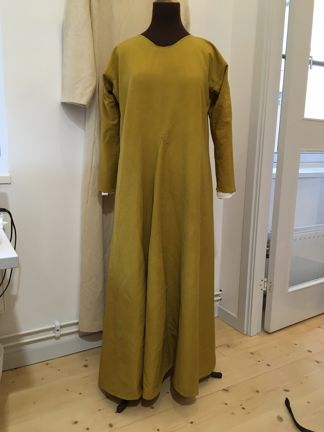 Så här skulle en förmögen kvinna kunnat varit klädd i Stockholm under 1200-talet. För under 1200-talet rådde ett enkelt och elegant mode utan applicerade dekorationer. Det var tygets kvalitet och fall som gav plaggen deras status.