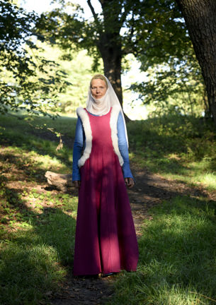 Så här skulle en borgmästarhustru i Stockholm kunnat varit klädd under sent 1300-tal.