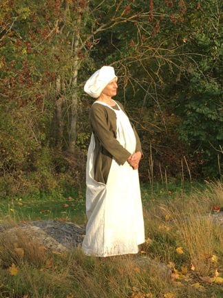 Så här skulle en hantverkarkvinna kunnat vara klädd på mitten av 1400-talet.
