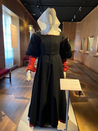 Så här skulle en köpmanshustru kunnat vara klädd i Stockholm under 1520-talet.