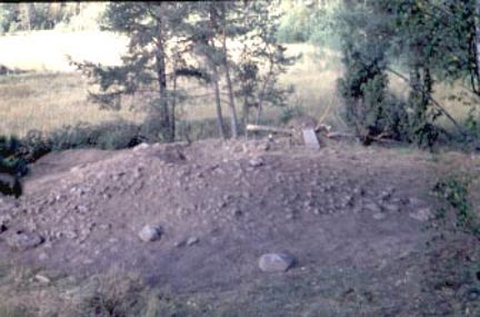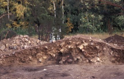 Under skärvstenshögen fanns ett 8 x 9 x 0,6 m stort sotlager, cirka 50 cm under torven. Detta lager var i centrum helt förstört av militärvärnet. Sotlagret innehöll keramik och bränd lera i ringa mängd, obrända och brända ben, knacksten och kol.